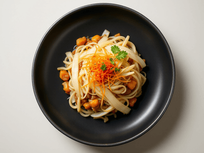 Nikujaga (肉じゃが) is a classic Japanese comfort food, originating from the late 19th century and loved by families across Japan. Literally translating to 'meat and potatoes,' Nikujaga is simmered in a savory-sweet broth made from dashi, soy sauce, and mirin, creating an irresistibly umami-rich dish. The recipe is simple yet elegant, reflecting the Japanese philosophy of letting seasonal ingredients shine. Traditionally served as a wholesome dinner, Nikujaga is often found in home kitchens, izakayas, and school lunches, symbolizing warmth and care. This Japanese stew features thinly sliced beef (gyūniku), potatoes (jagaimo), onions (tamanegi), carrots (ninjin), and green beans (ingen), all simmered together. The blend of flavors balances sweetness and saltiness, making it both satisfying and health-conscious. Nikujaga’s comforting nature and nutritional balance make it a great choice for anyone seeking authentic Japanese cuisine with a modern, healthy twist. Presenting Nikujaga in a shallow bowl, garnished with seasonal greens, adds to the visual appeal, reflecting the Japanese focus on presentation.